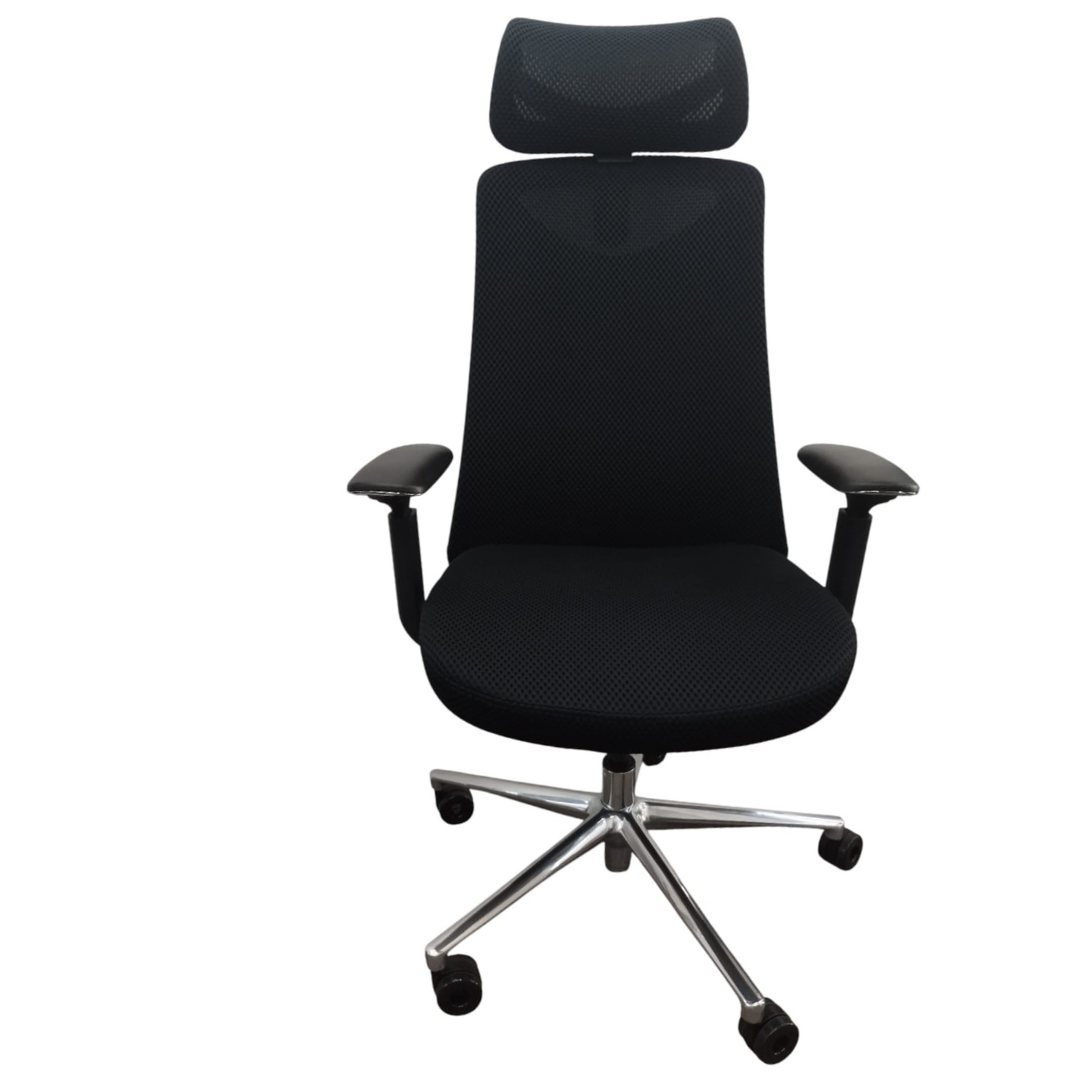 Base: En Aluminio de 5 radios. Ruedas: Auto lubricadas doble pista de larga duración o regatones con alma de acero Regulaciones: Altura de asiento a gas accionado con palanca. Sistema de relax con sincro, control de tensión y ángulo ajustable. Cabezal regulable en tela “MESH” color negro Posabrazos: 3D Con regulación de altura, giro y profundidad, en polipropileno con terminación en poliuretano rígido. Asiento y respaldo: Malla acrílica tensada de alta resistencia color negro. Dimensiones: Asiento Regulable en profundidad. Medidas: 52cm. de ancho x 53cm. de profundidad. Respaldo 45 cm. de ancho x 66cm. de altura sin cabezal. El cabezal adiciona min. 21 cm. El respaldo cuenta con apoyo lumbar ergonómico y regulable. Además de cabezal ajustable, logrando una altura máxima de aprox. 90 cm. |